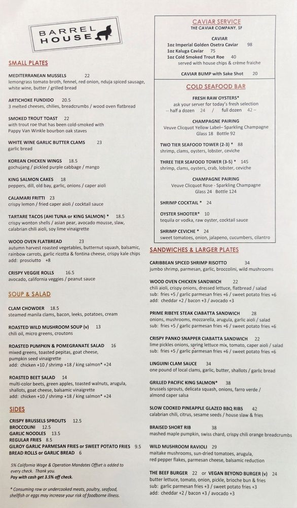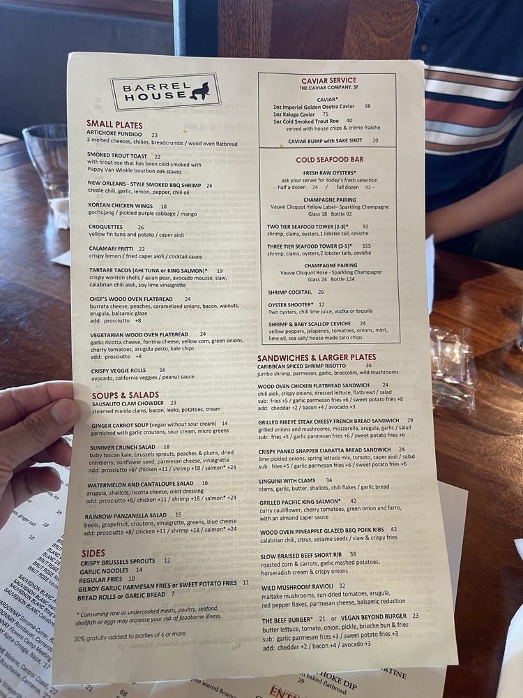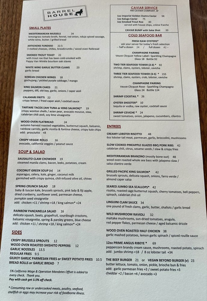 Barrel House Tavern in Sausalito, CA offers a variety of dining options with stunning ocean views. The restaurant provides a classy ambiance with outdoor seating, making it ideal for lunch or dinner. The menu includes vegan and vegetarian options, along with delicious dishes like shrimp risotto and ceviche. Customers praise the friendly service and the beautiful views, enhancing the overall dining experience. Whether you're looking for a casual meal or celebrating a special occasion, Barrel House Tavern delivers excellent food and ambiance. Don't miss out on their happy hour specials and be sure to try their famous Korean wings and calamari. With accessible parking, wheelchair access, and a full bar, this restaurant caters to a wide range of guests. Experience the charm of Barrel House Tavern and indulge in their mouth-watering dishes for a memorable dining experience.